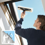 The new, smooth galvanized handle located at the bottom is designed to allow easy and comfortable opening and closing of windows installed high. To clean the window, rotate it 180˚ and slide the locking bolt into the frame. Now you have both hands free.