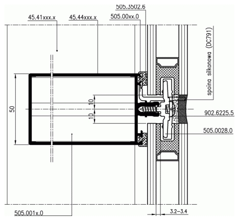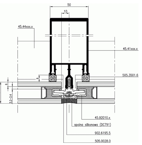 Agat+ Factory of Windows and Doors FA 50 facade, SL variant – section through the facade mullion FA 50 facade, SL variant – section through the façade transom